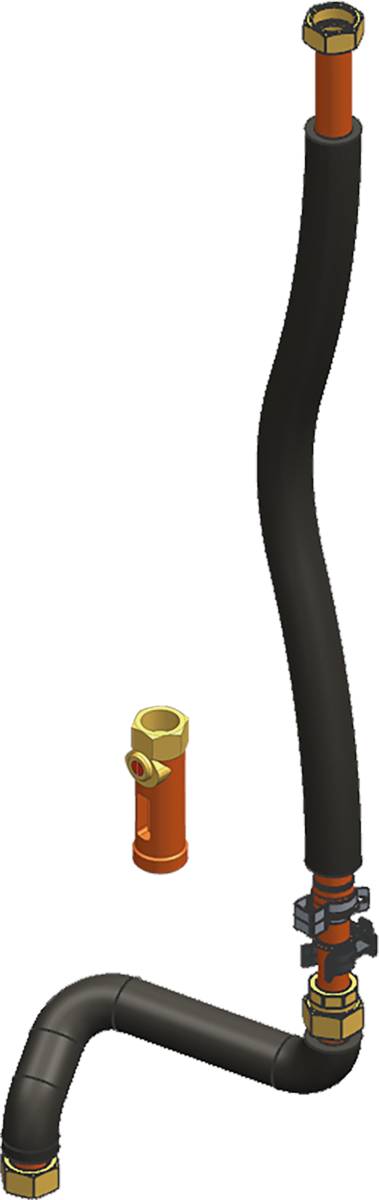 Für bauseitige Installation mit Durchflussregulierventil und Anschlussrohr ohne Wärmedämmung.