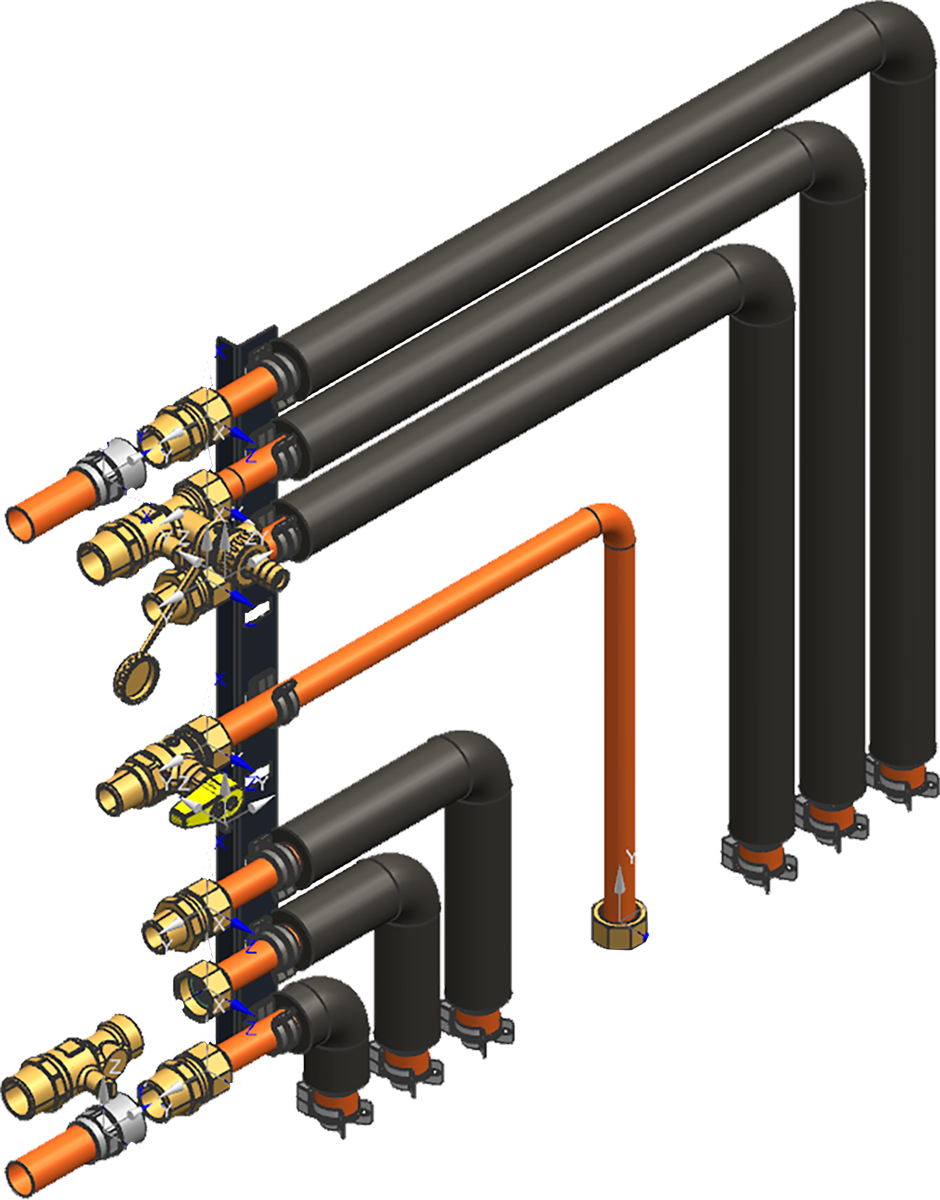 - Absperrarmaturen für Heizwasservor- und rücklauf (R 3/4) sowie KFE-Hahn